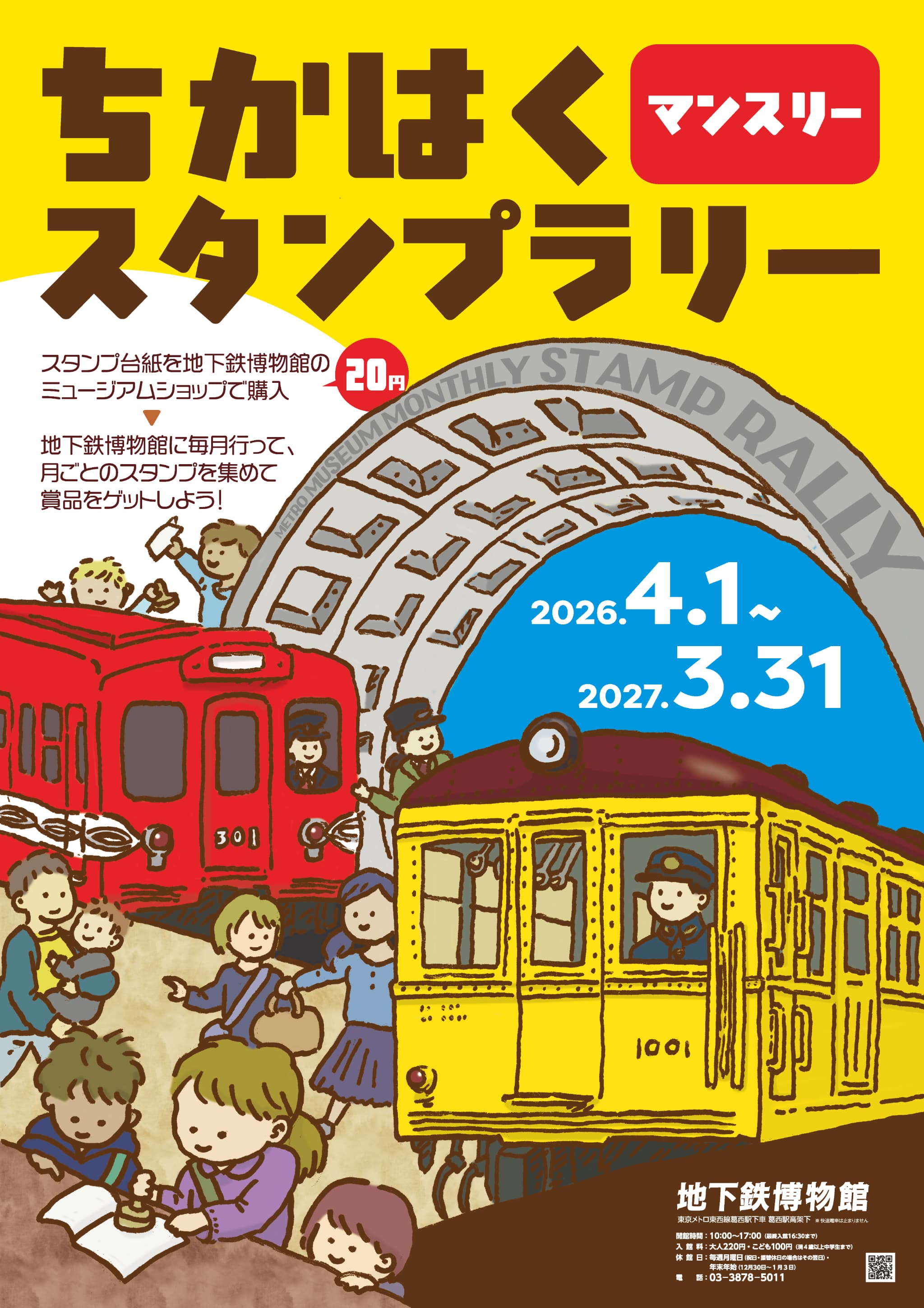 地下鉄博物館では、2026年4月1日(水)~2027年3月31日(水)まで、「ちかはくマンスリースタンプラリー」を開催いたします。