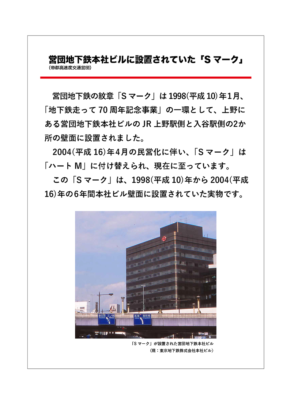 収蔵品展 懐かしの営団地下鉄Sマーク展